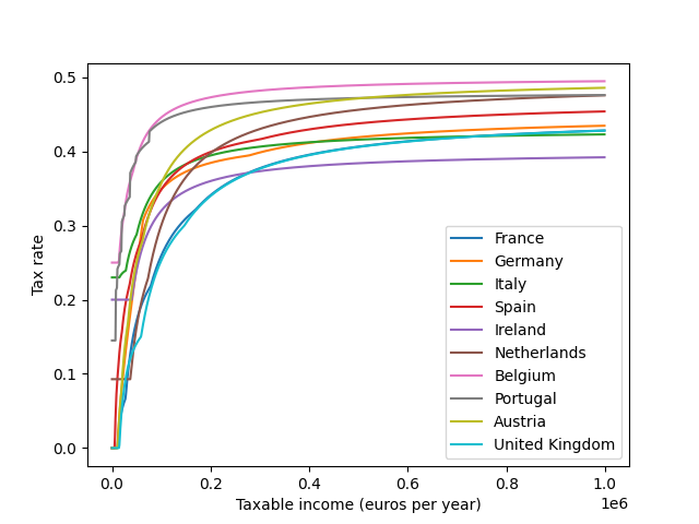 И нашими победителями выходят Франция и Великобритания. Также могу сказать, что по моим прикидкам (я изучил пороги прогрессивной шкалы, но не строил точные графики) среди всех некарликовых стран Евросоюза Франция имеет самый низкий НДФЛ.